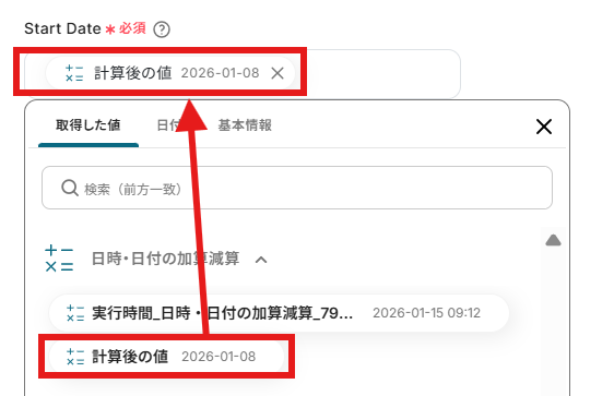 「Start Data」は取得した値から「計算後の値」を入力しましょう。