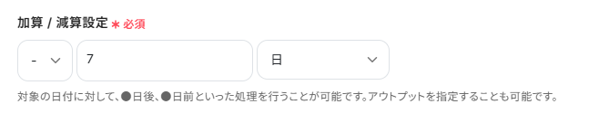 「加算 / 減算設定」は一週間前の日付を算出するため「-7日」と入力しましょう。