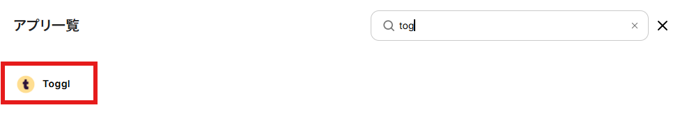 マイアプリ>新規接続からTogglを検索してクリックします。