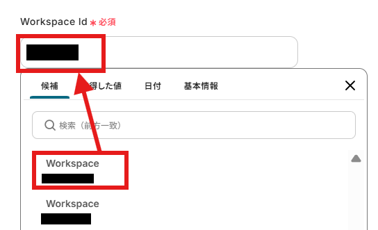 「Workspace Id」には週次レポートを取得したいWorkspaceのIDを、候補から選択してください。