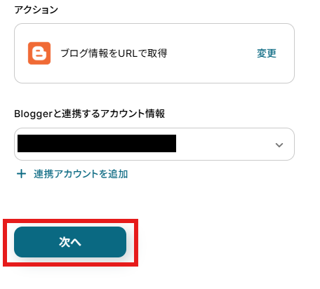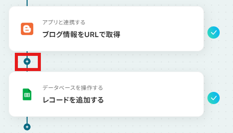 「ブログ情報をURLで取得」の後の+マークをクリックし、Notionなどのアクションを追加します。