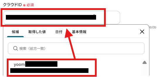 - Confluenceでフォルダを作成するアクションを設定する際には、対象のクラウドIDとスペースIDを任意で設定してください