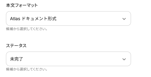 本文フォーマット、ステータスも候補に表示されますので、上記と同様に設定を行ってください。