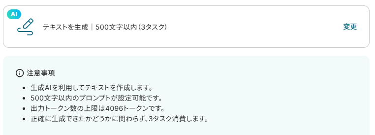 - 次に、オペレーションでAI機能を設定し、取得したタスク一覧をSlack通知用に要約・整形するためのマニュアル(指示)を作成します