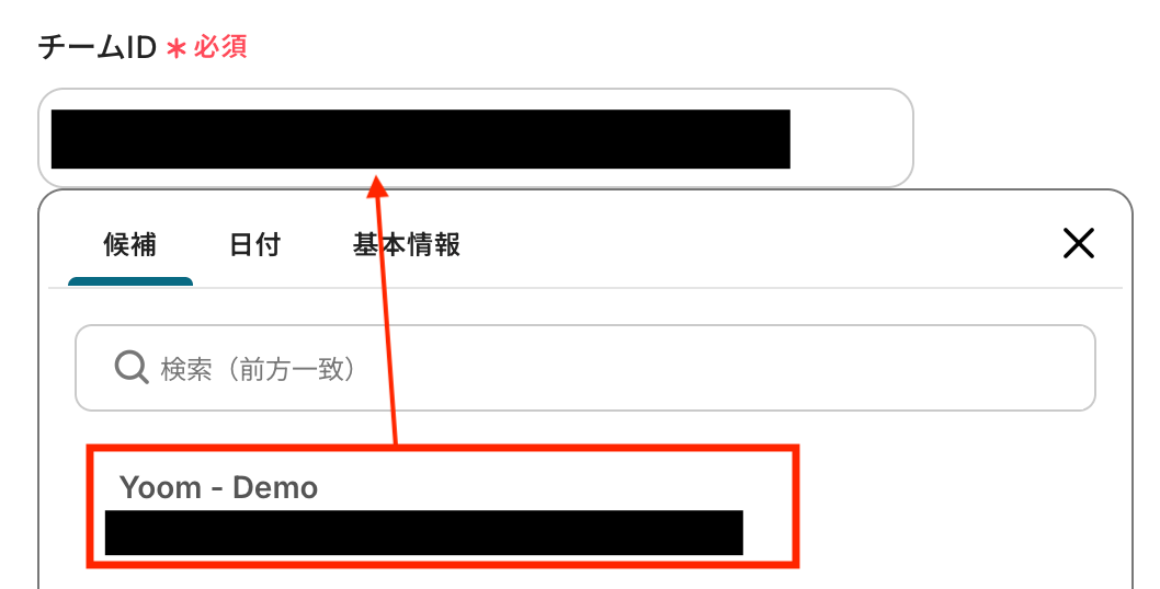 チームIDを候補から選びます。