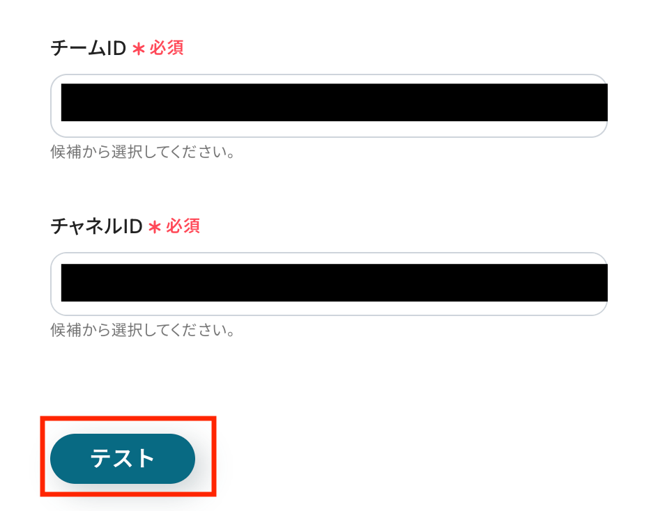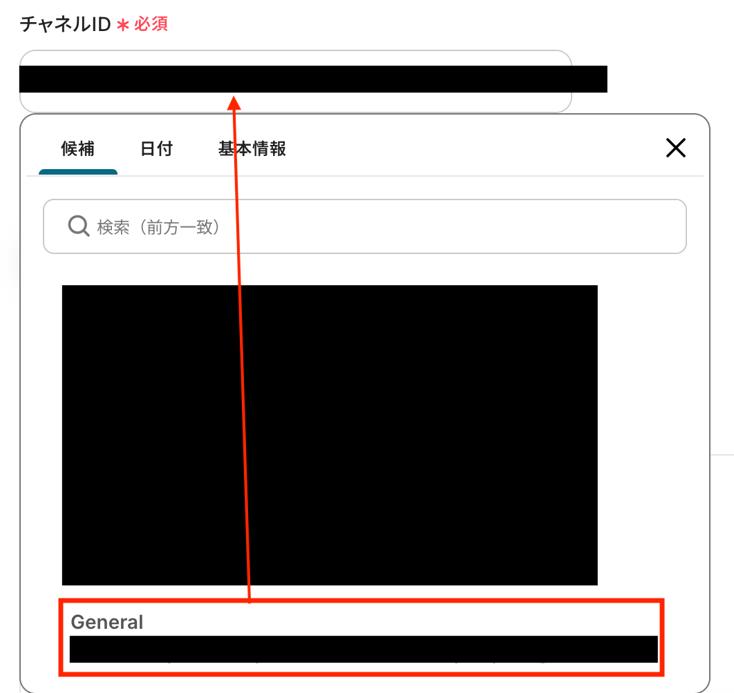 チャネルIDを候補から選びます。