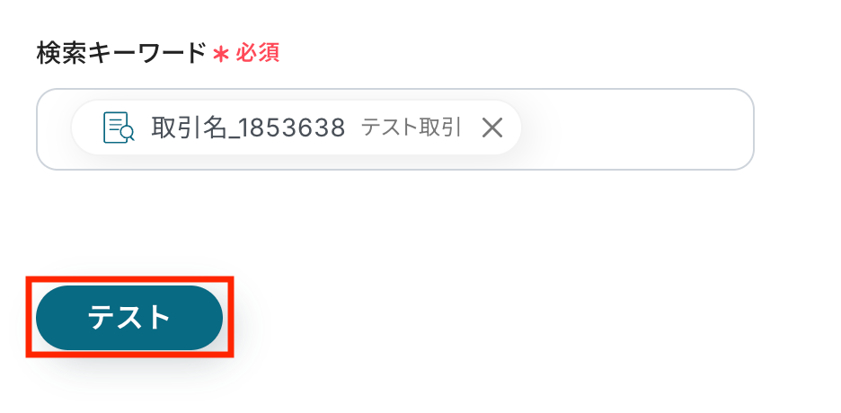 検索キーワードに、前ステップで抽出した「取引名_XXXXXXX」を差し込みましょう。