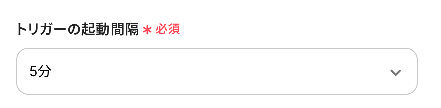 - トリガーの起動タイミングは、5分、10分、15分、30分、60分のいずれかで設定できます。