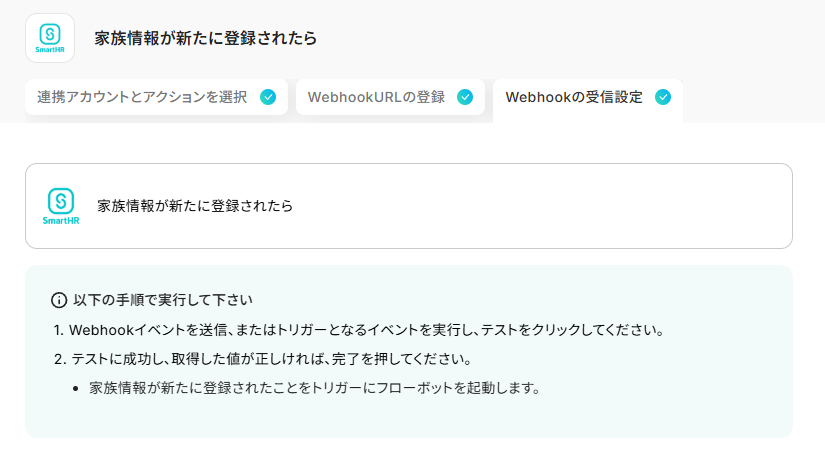 以上が、SmartHRに家族情報が新規登録された際に、その内容をGoogle スプレッドシートに自動で記録し、担当者へメールで通知するフローの連携手順になります。