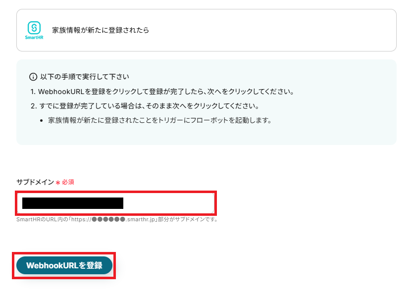 入力が完了したら「WebhookURLを登録」をクリックしましょう。