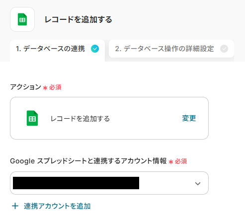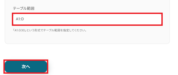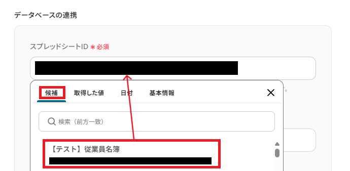 「スプレッドシートID」は、先ほど作成したシートを候補から選択してください。