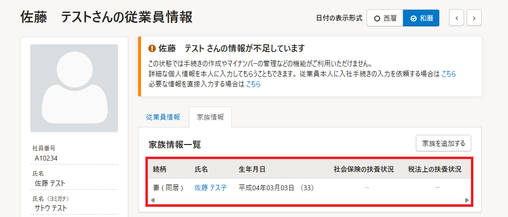 Q:どんな家族情報(続柄、扶養状況など)を取得できますか?