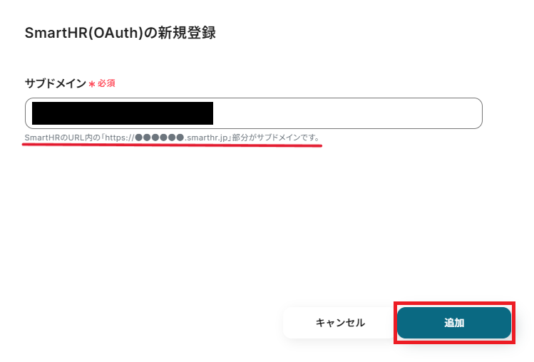 「サブドメイン」を、注釈を参考に入力しましょう。