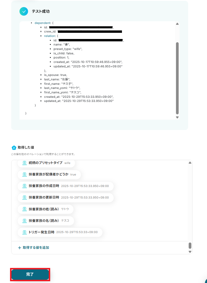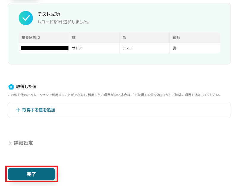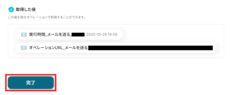 確認ができたら、Yoomに戻り「完了」をクリックしてください。