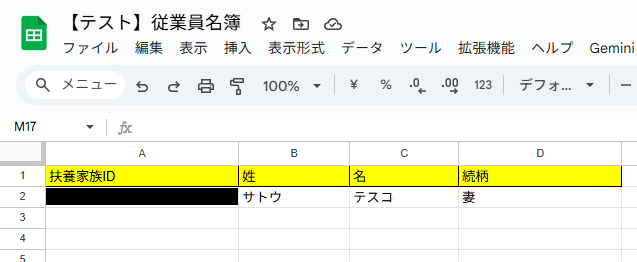 作成するデータの内容は、テスト用のため架空の情報(「山田テスト」や「テスト太郎」など)でOKです。