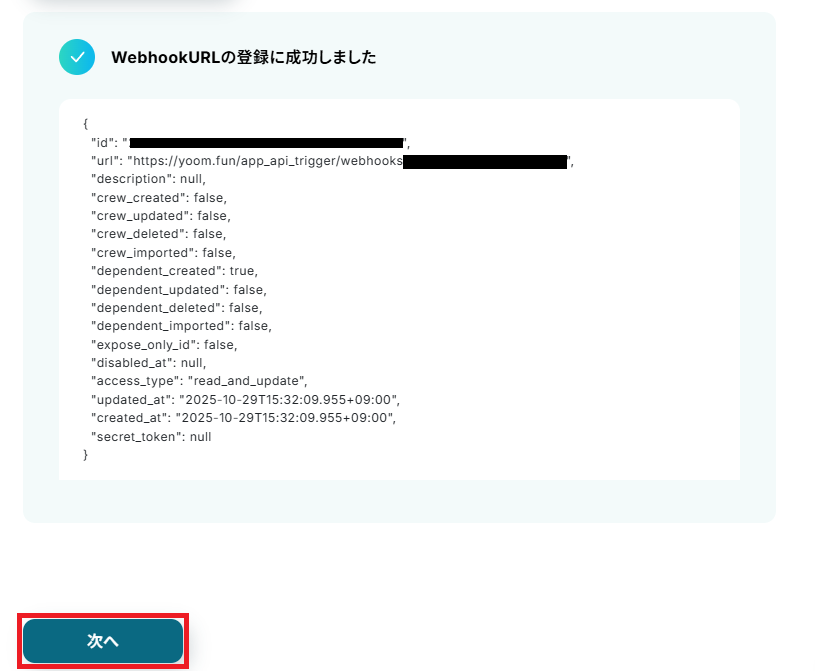 作成が完了したら、Yoomに戻り設定を進めていきます。