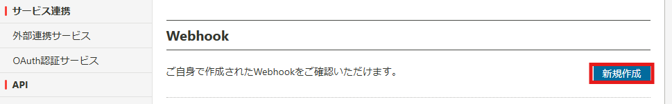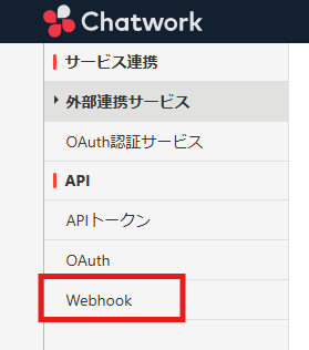 サイドバーに表示される「Webhook」 ボタンをクリックします。