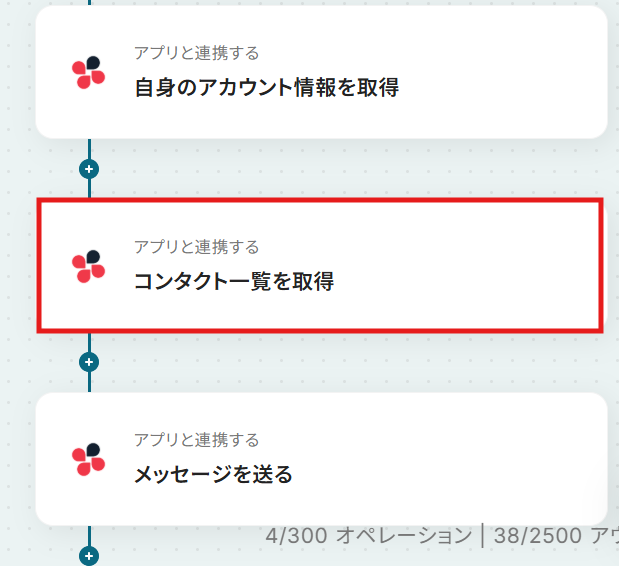 ステップ6:Chatworkのコンタクト一覧を取得する 次に、「コンタクト一覧を取得」という項目をクリックし設定していきます。