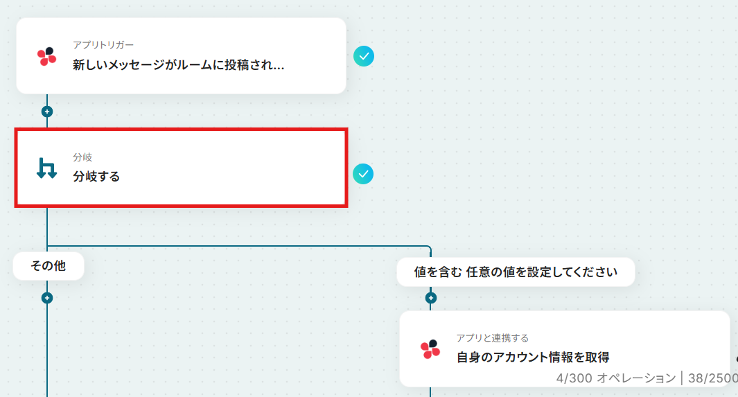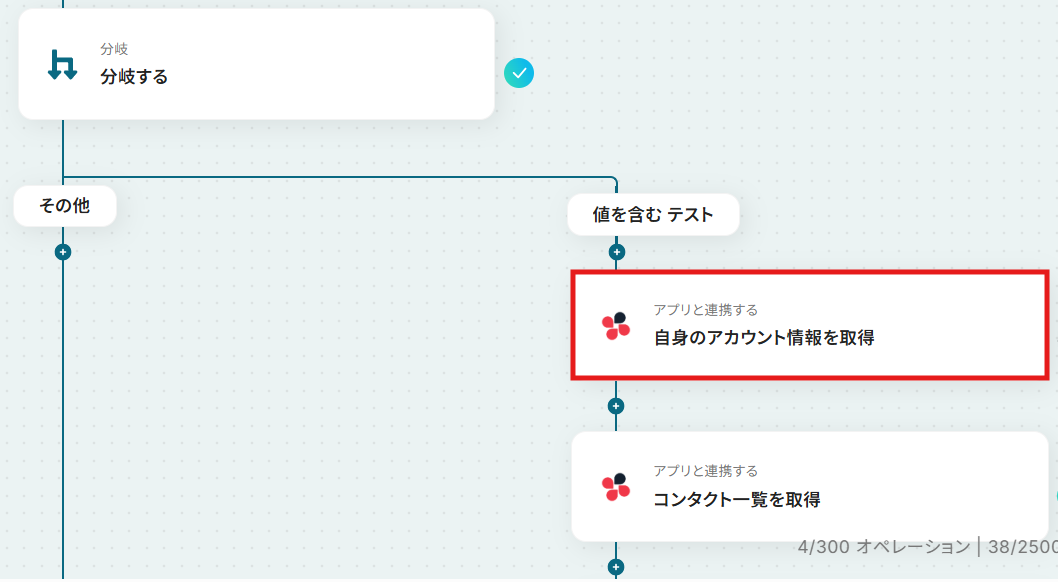 ※「分岐する」オペレーションは、ミニプラン以上でご利用いただけます。フリープランで利用するとエラーになってしまうのでご注意ください。