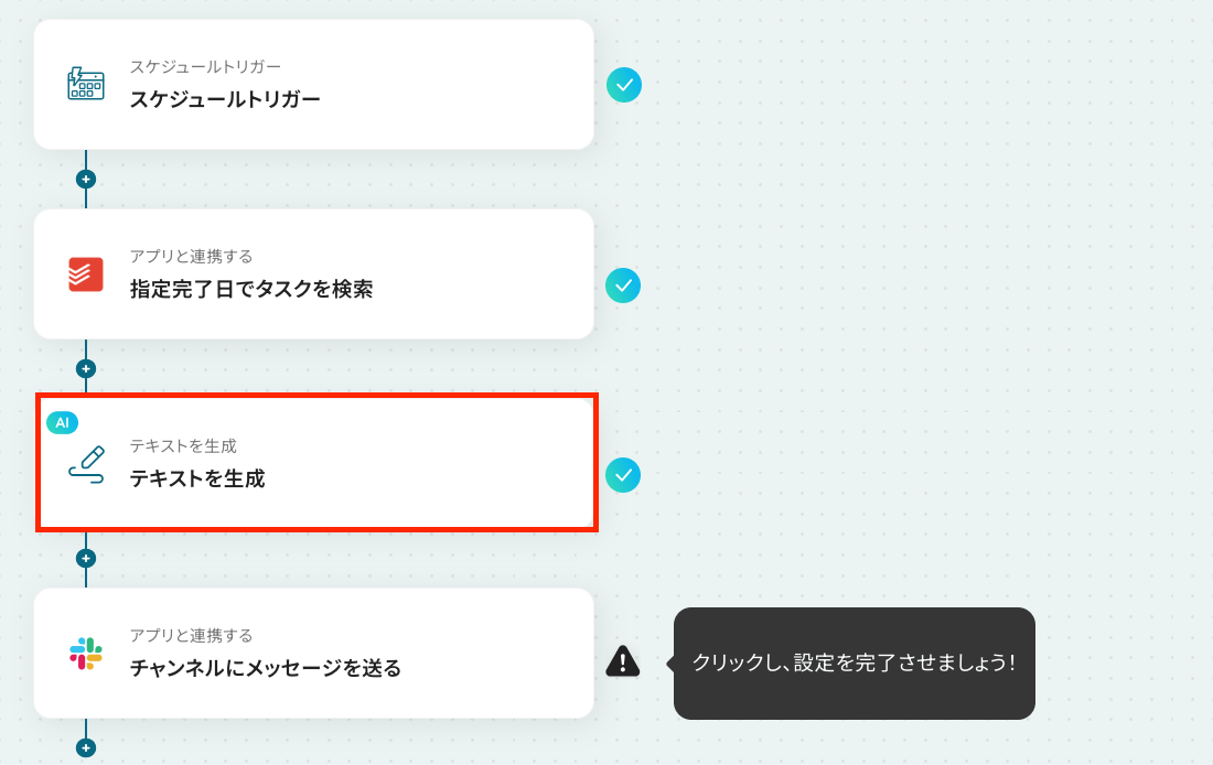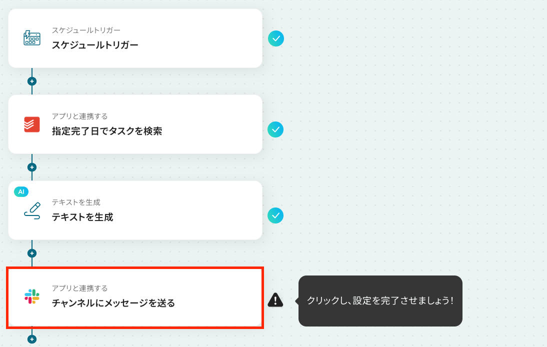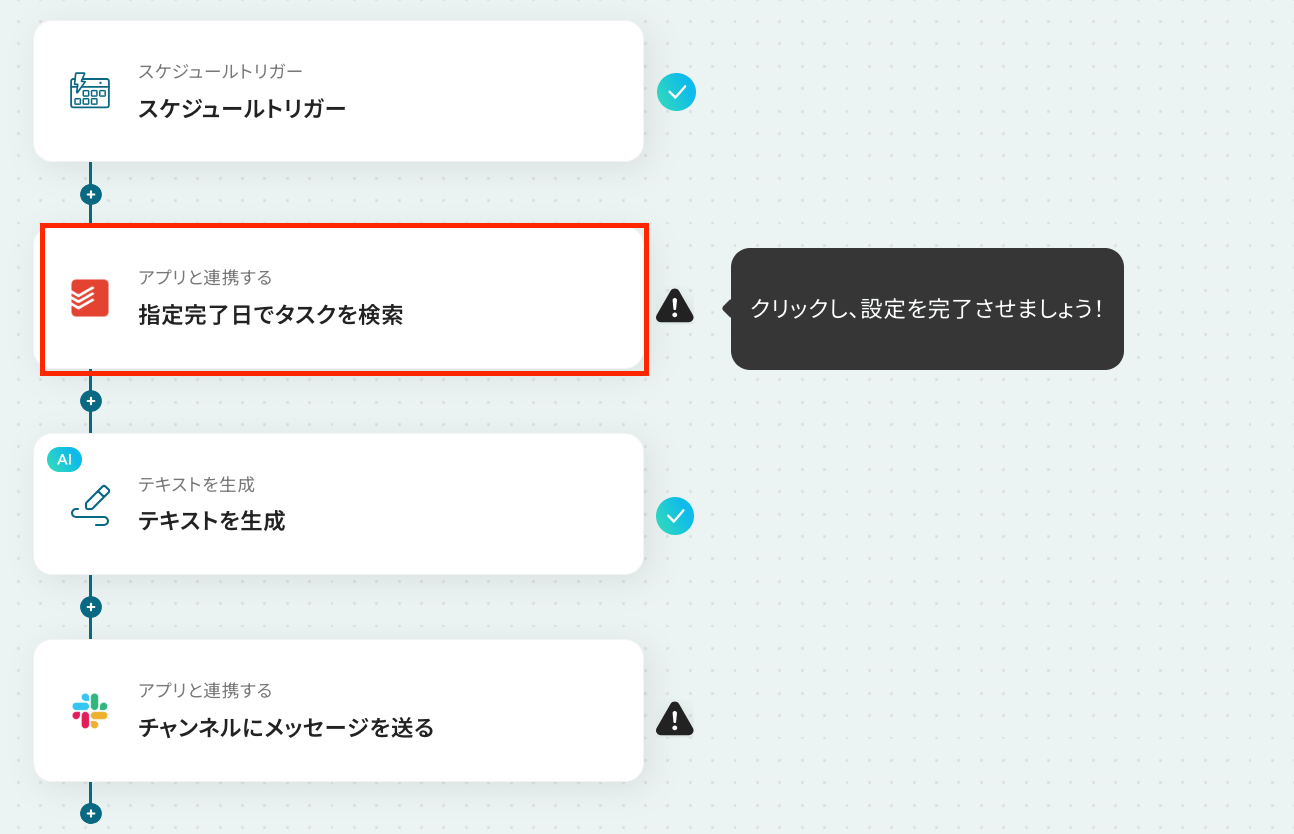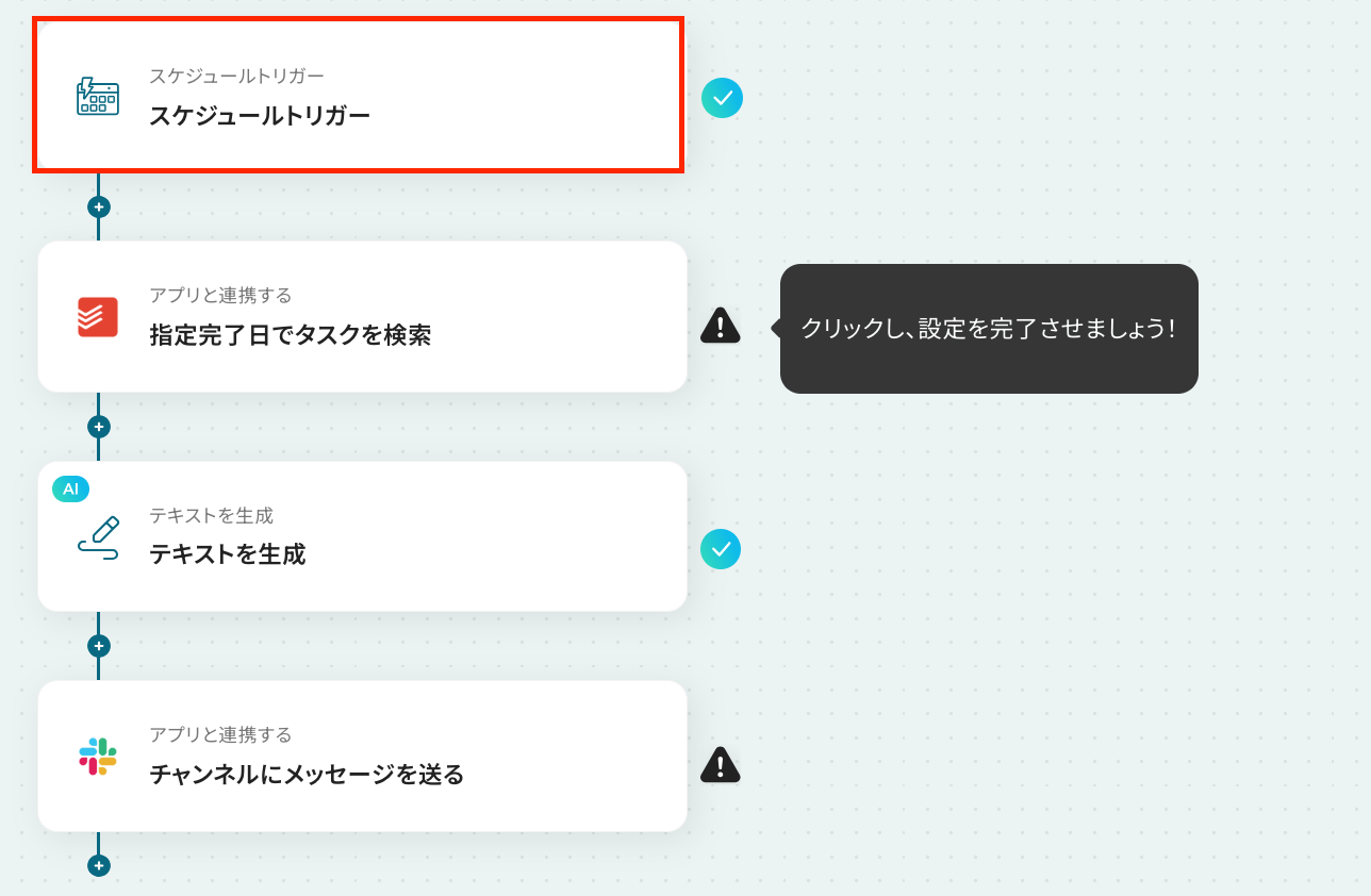ここから「毎日特定の時刻にTodoistで完了したタスクを取得し、Slackに日報として通知する」フローの設定をしていきます!