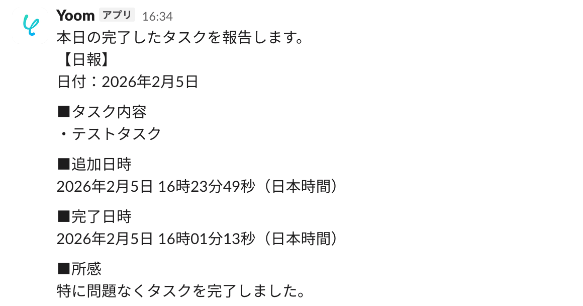 - 毎日定時にTodoistから完了タスクを自動で取得しSlackへ通知するため、日報作成にかかる時間を短縮できます。