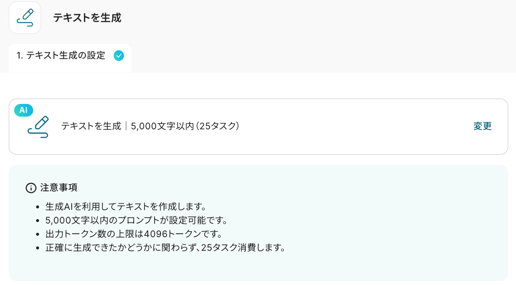 ここでは、AIでテキストを生成する際に使用するプロンプトを設定します。