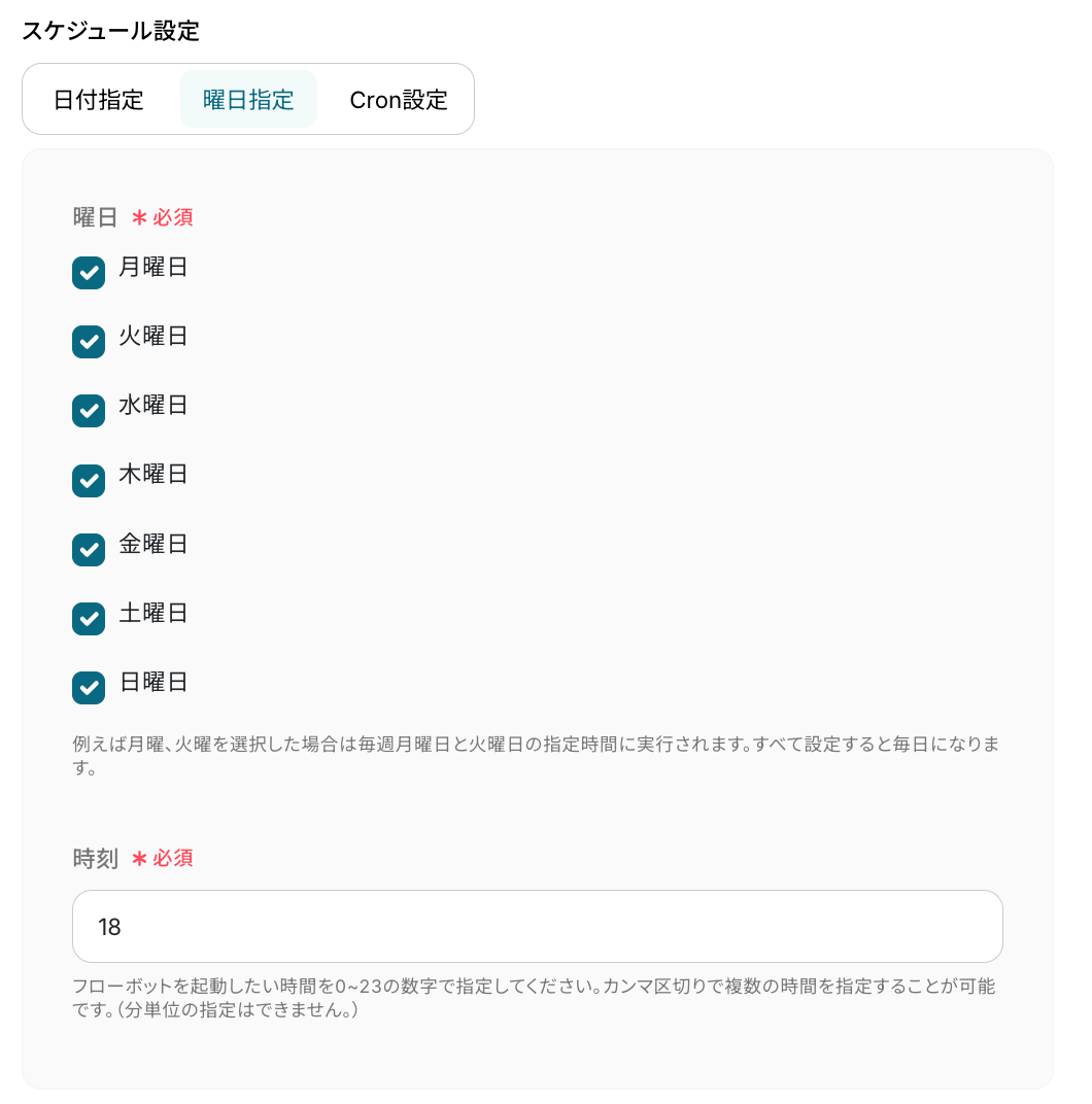 フローボットを起動したい日付や時刻を自由に設定しましょう。