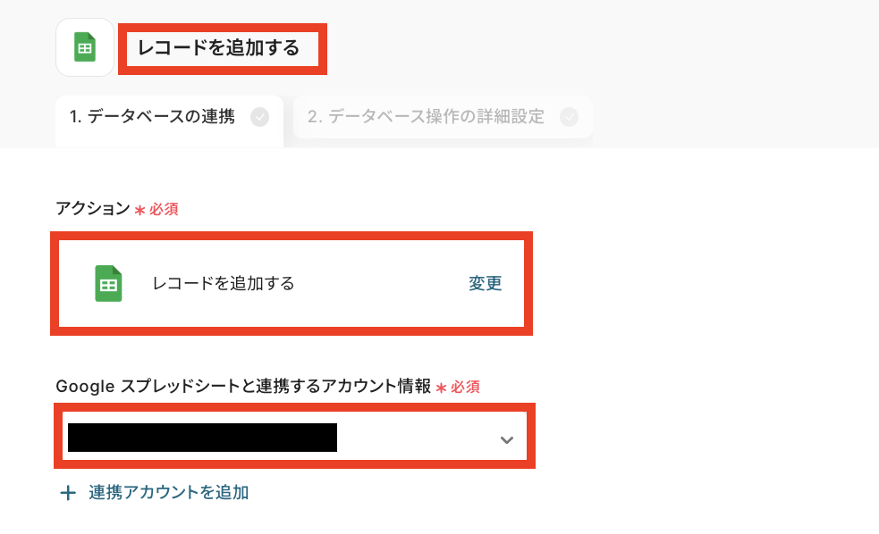 ステップ6:Google スプレッドシートのアクション設定