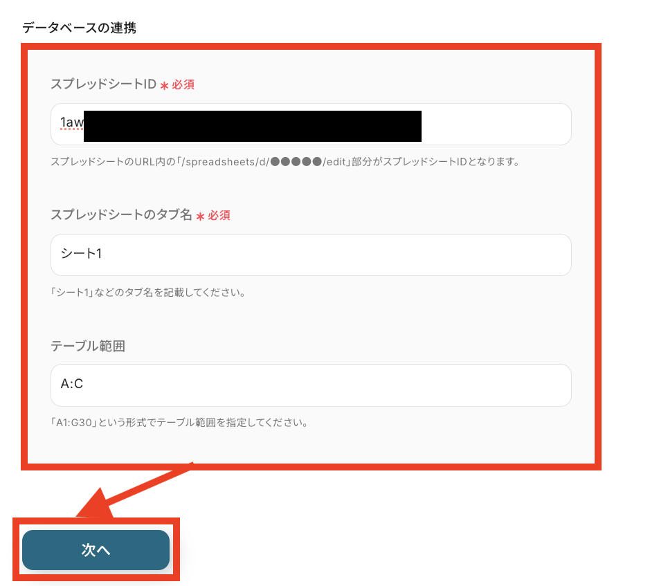 それでは「スプレッドシートID」から指定していきます。