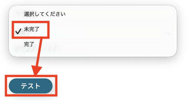 「ステータス」を「未完了」に設定したら「テスト」をクリックします。