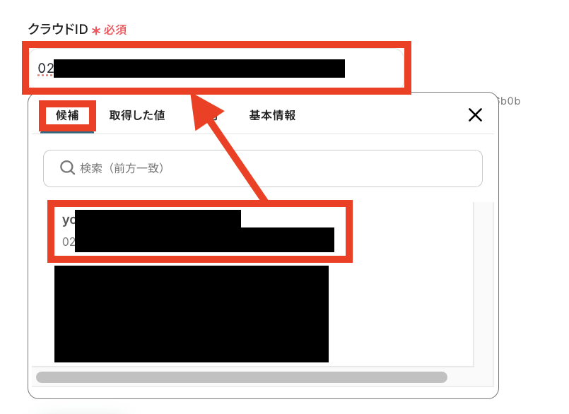 入力欄をクリックすると、候補一覧が表示されるので連携したいクラウドIDをクリックしてください。