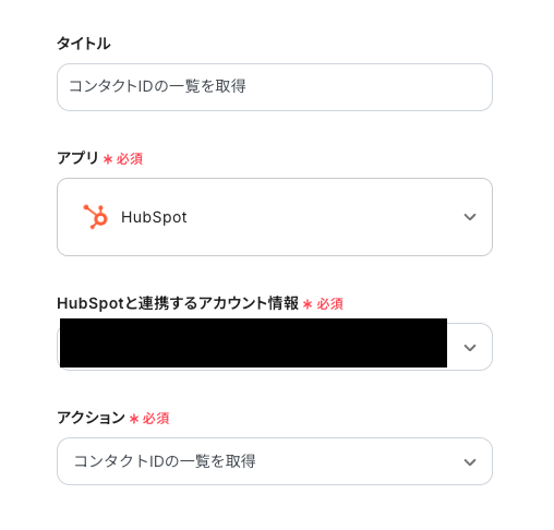 「アクション」:デフォルトで「コンタクトIDの一覧を取得」が選択されるので、そのままでOKです!