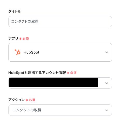 「HubSpotと連携するアカウント情報」:ステップ1で連携したアカウントが表示されていることを確認します。