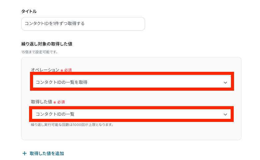 「コンタクトIDを1件ずつ取得する」をクリックします。