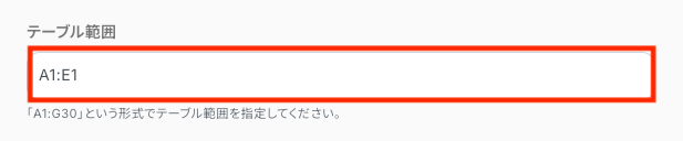 最後に「テーブル範囲」を連携するGoogle スプレッドシートに合わせて、設定します。