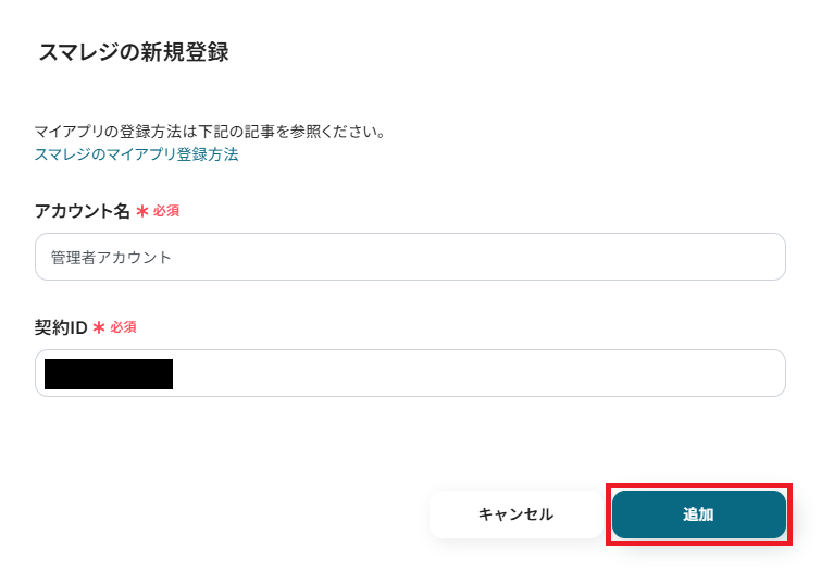最後に「追加」を押せば、マイアプリ登録が完了です。