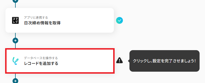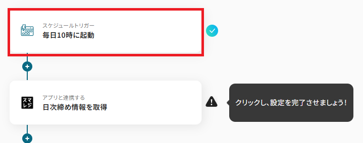 ここから、毎日決まった時間に前日のスマレジの日次締め情報を自動で取得し、Yoomのデータベースに格納するフローを解説していきます。