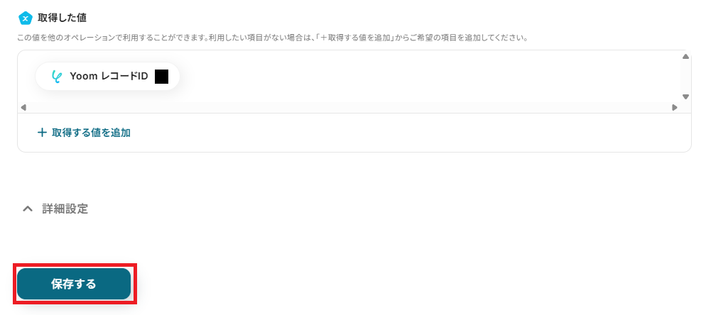 確認できたら、Yoomに戻り「保存する」を押してください。