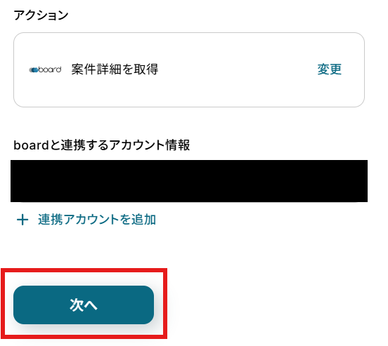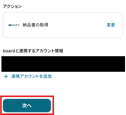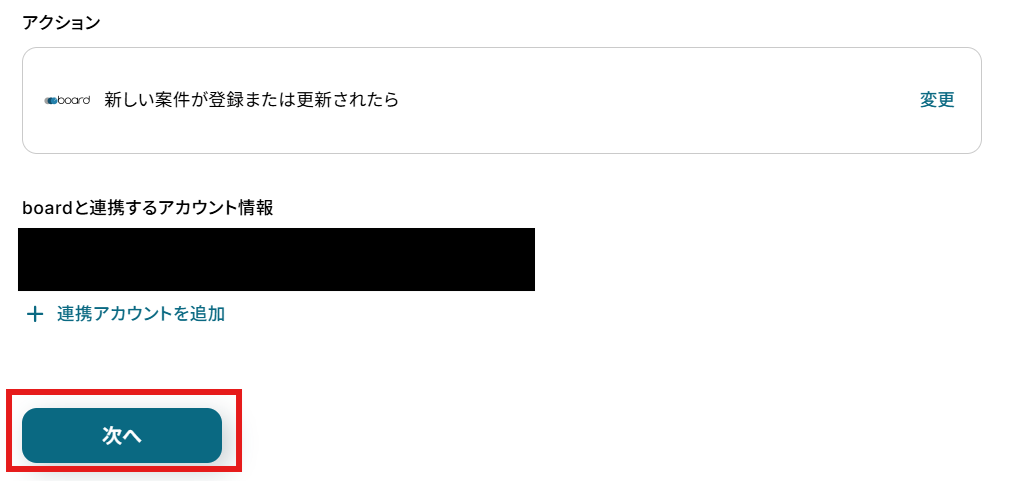 「boardと連携するアカウント情報」を確認し、「次へ」をクリックして進んでください。