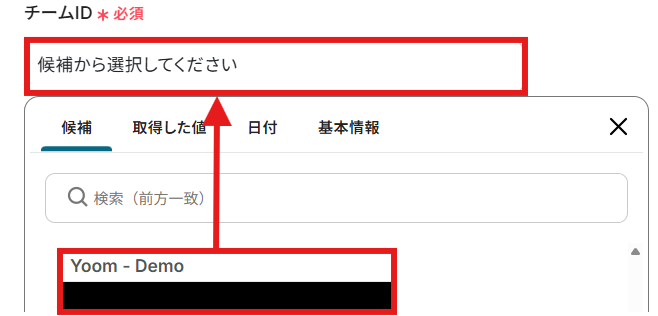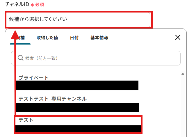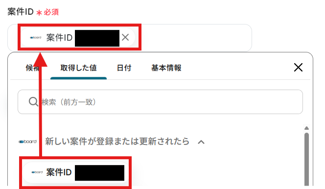「案件ID」を「取得した値」から設定しましょう。