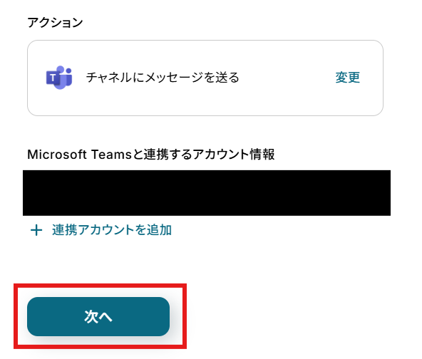 - Microsoft Teamsでメッセージを送信するアクションでは、通知先としたいチームIDおよびチャネルIDを任意で設定してください。