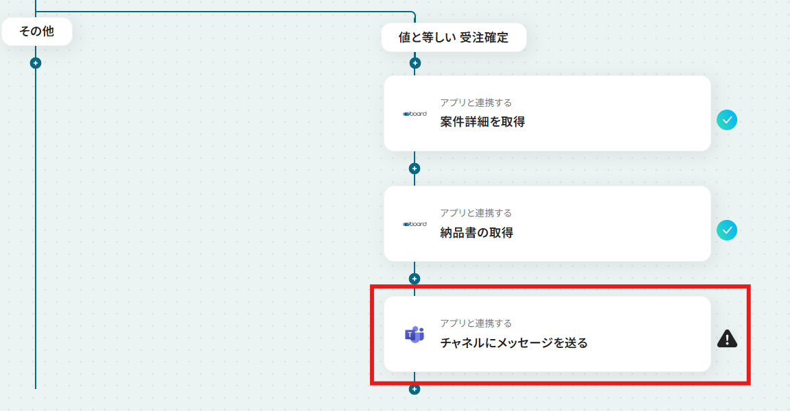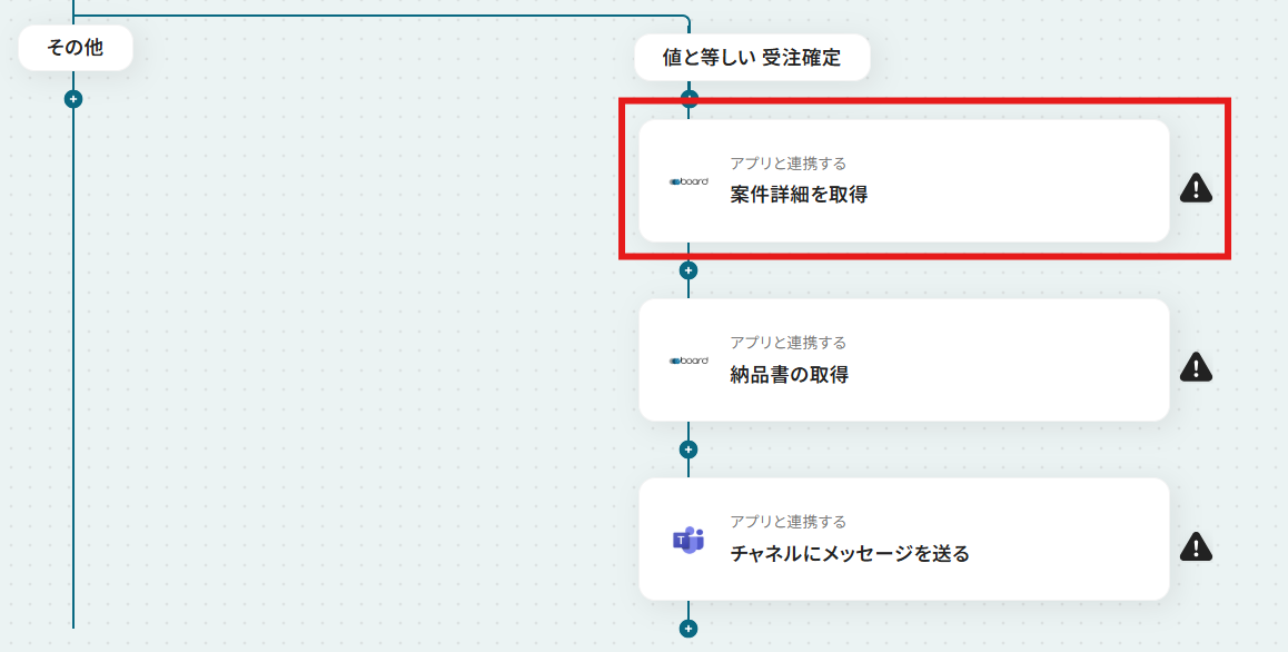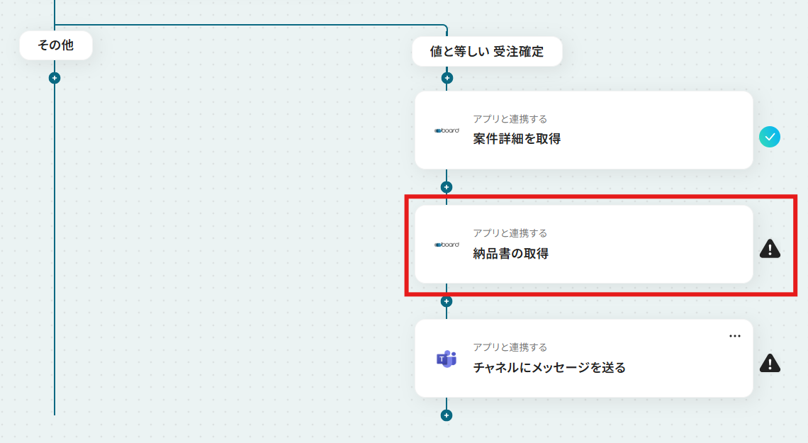 それではここから代表的な例として、boardで案件の受注が確定したら、納品書を自動で取得してMicrosoft Teamsで通知するフローを解説していきます!