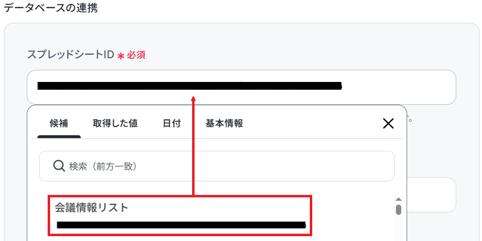 次に、先ほど用意したシートのスプレッドシートID を候補から選択しましょう。