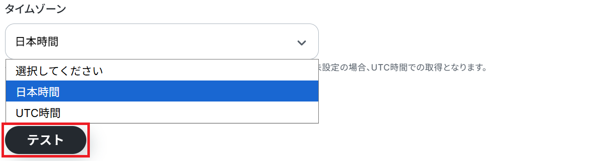 最後に、任意でタイムゾーン を選択しテストしてください。