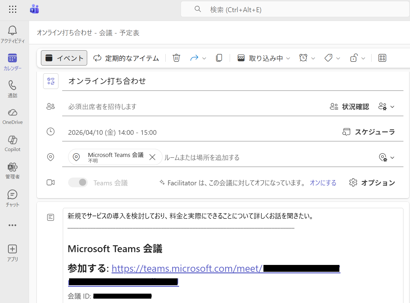 ステップ3:Microsoft Teamsのトリガー設定 はじめに準備として、テスト用の会議を作成してください。