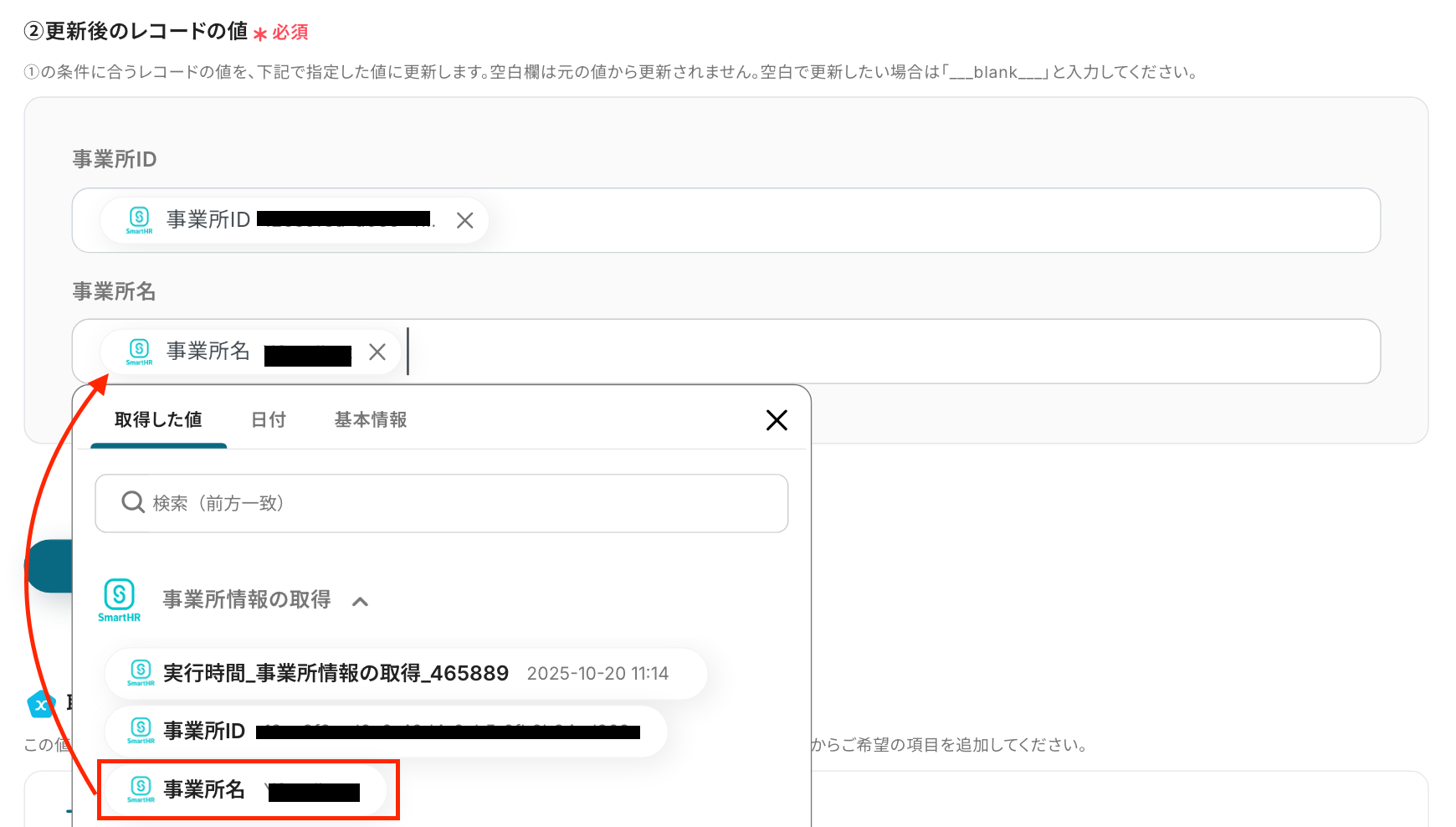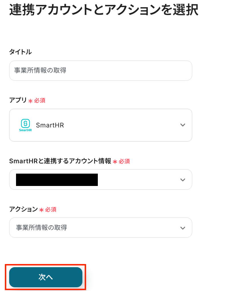 ここでは、SmartHRの事業所情報を取得する設定を行います。