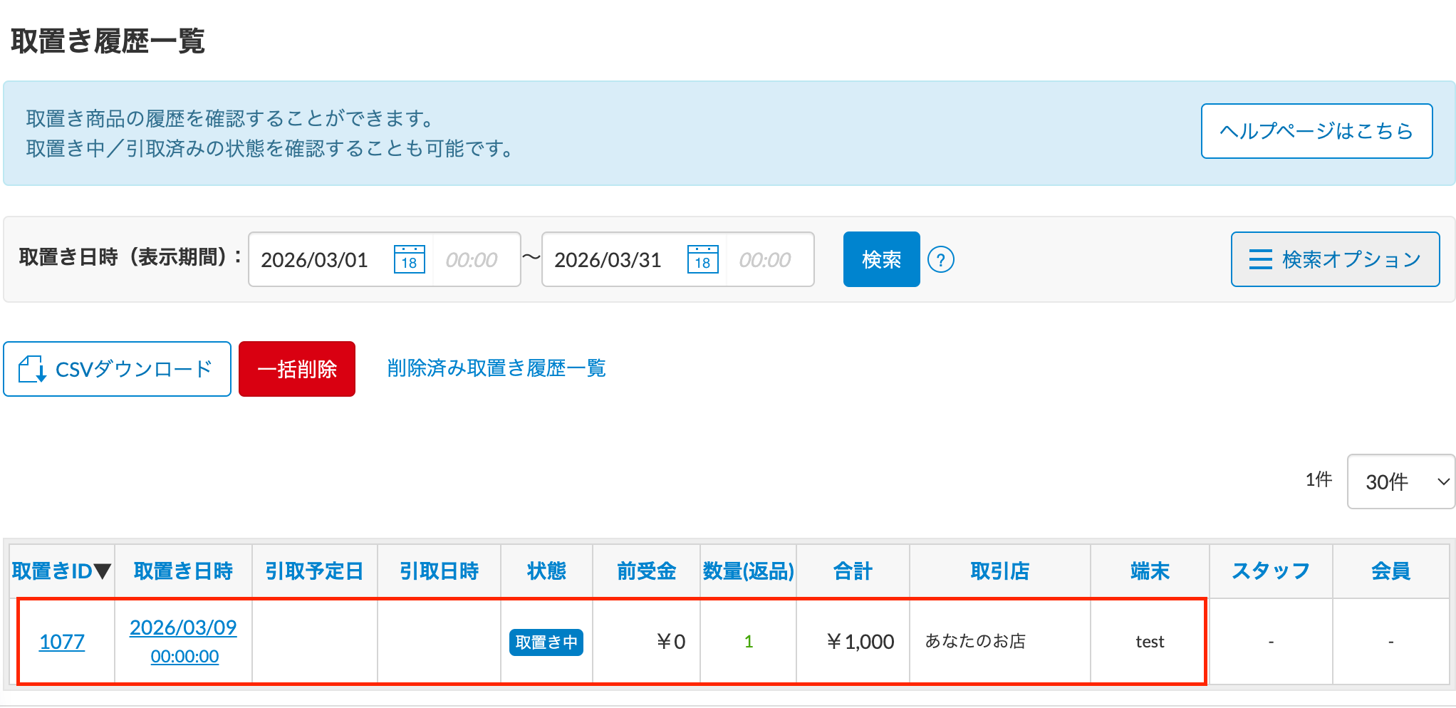 ※今回は、以下の取置き一覧を対象とします。