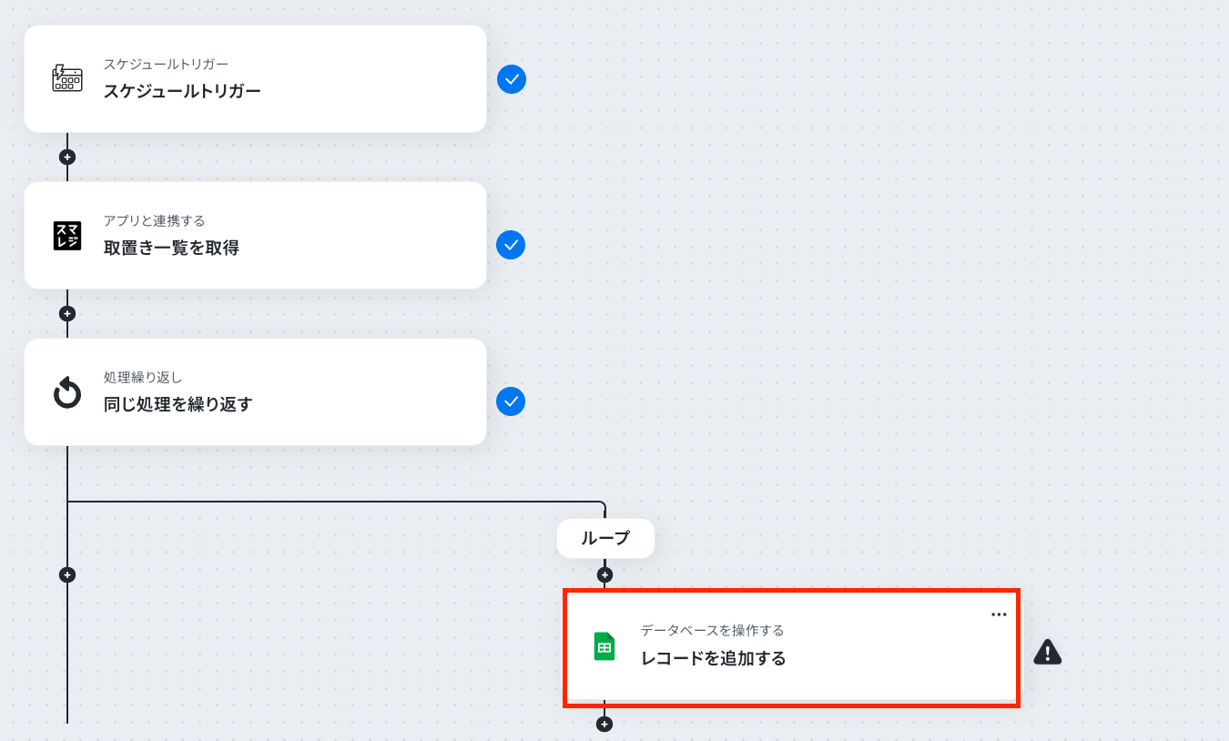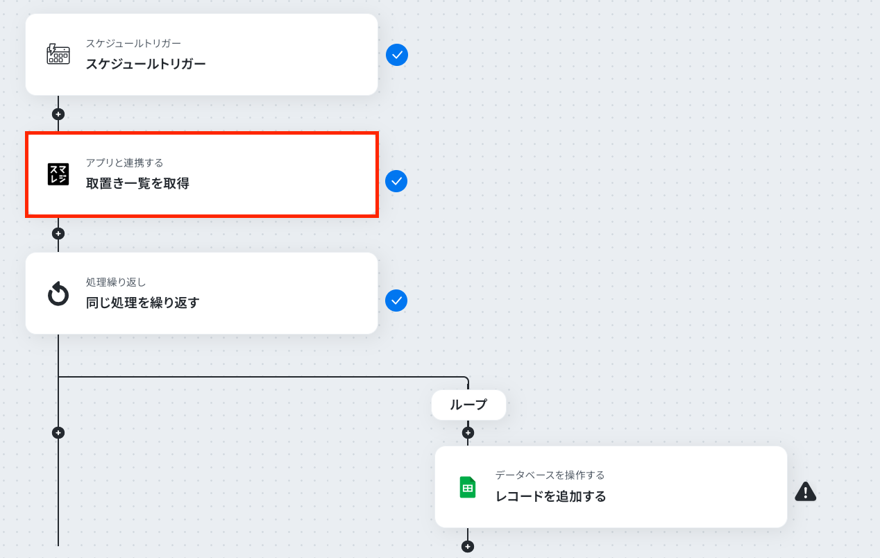 スケジュールトリガー・繰り返し処理・スマレジとGoogle スプレッドシートのアクションの設定