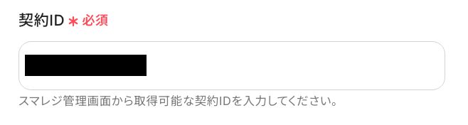 続いて、必須項目を設定していきます!「契約ID」 は、スマレジのマイアプリ方法 を参照して、スマレジの管理画面内で画面左上の契約IDを入力してください。