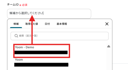 チームID、チャネルIDはボックスの候補から選択できます。